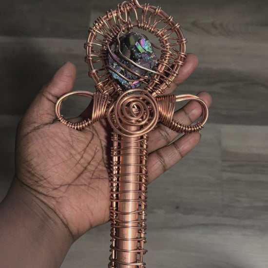 Experience the magic of daily cleansing rituals with our 8-10 inch Mini Ankh Sage Holder! Designed for effortless use, this beautifully weighted wand empowers you to ground your intentions and enhance your spiritual practice. Elevate your workspace and embrace the transformative energy it brings to your life! Each on is unique and each stone looks differently please allow 2 weeks for delivery as volume is high.