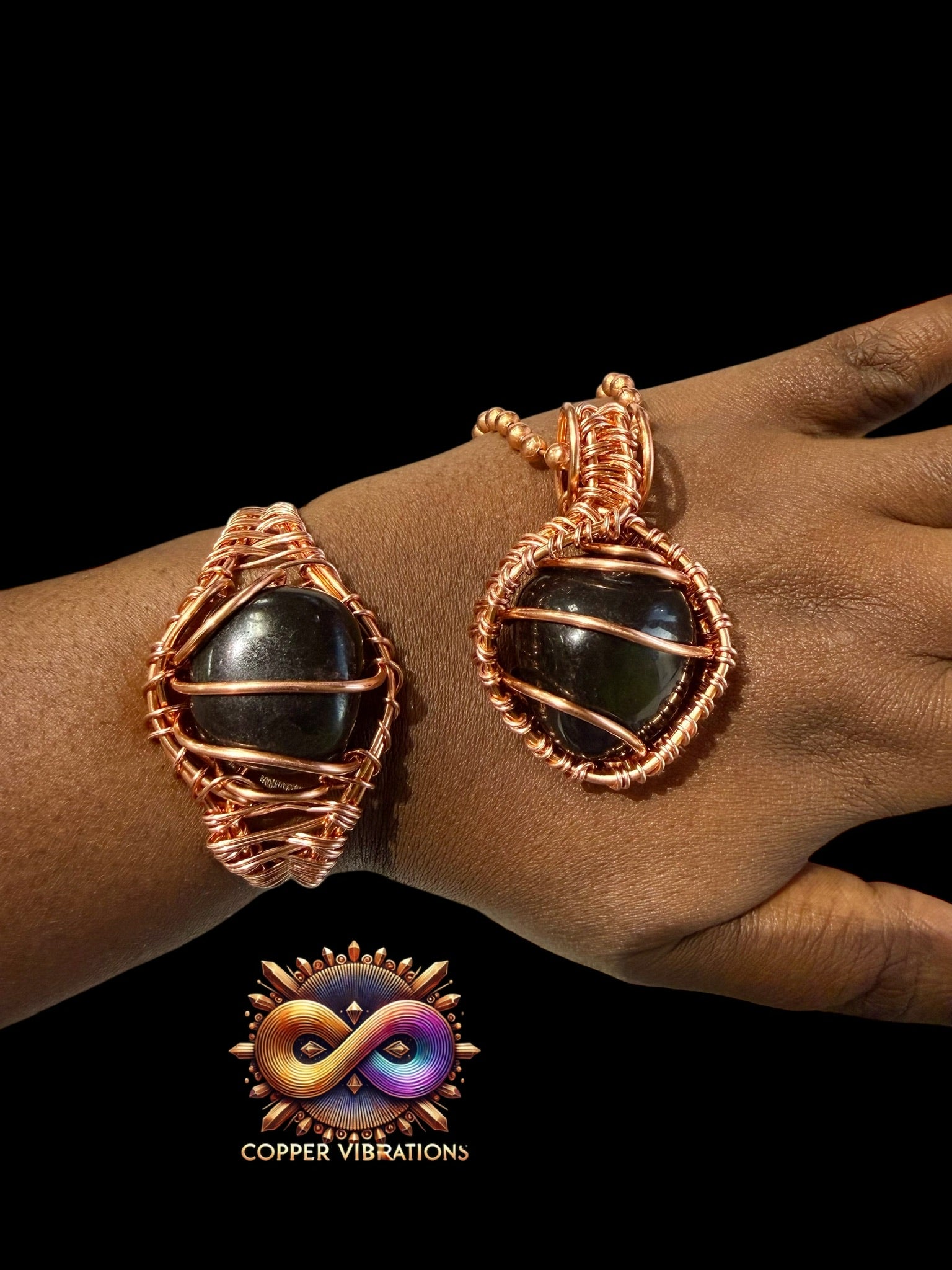 Our Black Obsidian set is designed for energy clearing and perfect for cutting off negative energy. The set includes a copper wrapped bracelet and a 24" necklace with a stunning Obsidian pendant. Experience a balanced and positive energy flow with our top-quality products.