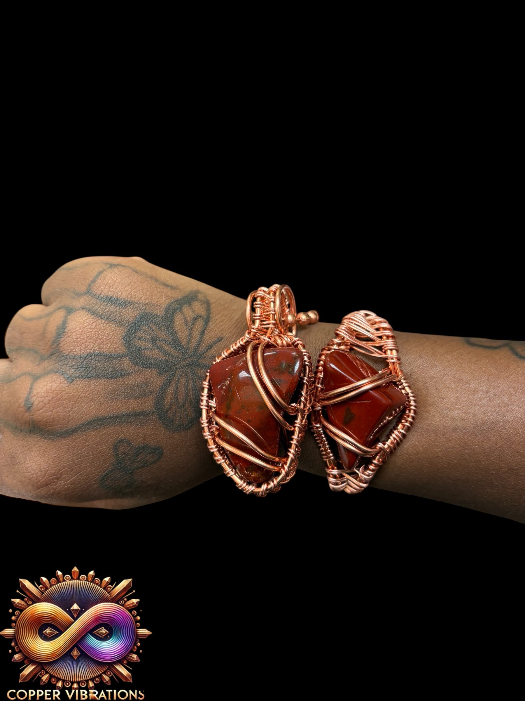 Experience a sense of security and sovereignty with our Red Jasper 2pc Set. Each piece is expertly wrapped in copper, enhancing the natural properties of red jasper. This set includes a bracelet and necklace, perfect for completing any outfit and promoting inner strength.